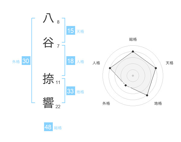八谷 捺響さんの総格は48画の4点!