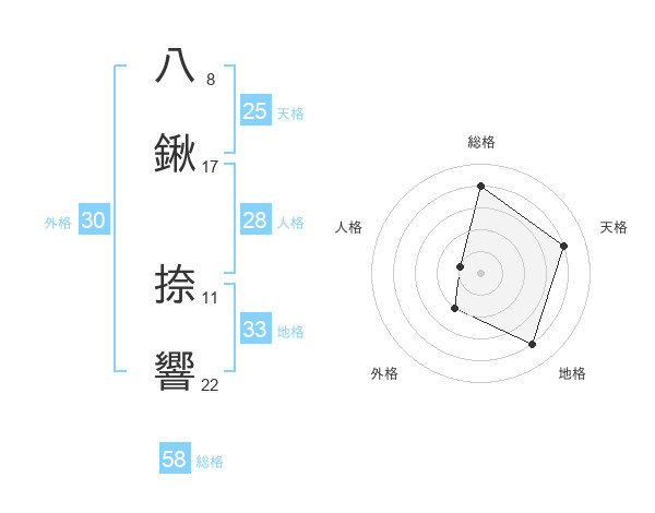 八鍬 捺響さんの総格は58画の4点!