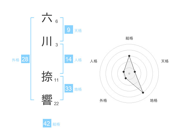 六川 捺響さんを姓名の画数から五運を鑑定