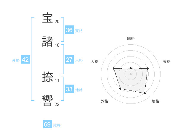 宝諸 捺響さんを姓名の画数から五運を鑑定