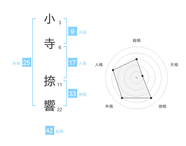 小寺 捺響さんを姓名の画数から五運を鑑定