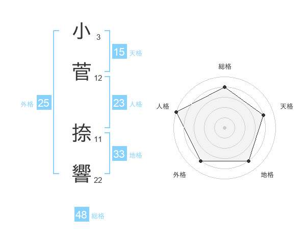 小菅 捺響さんの総格は48画の4点!