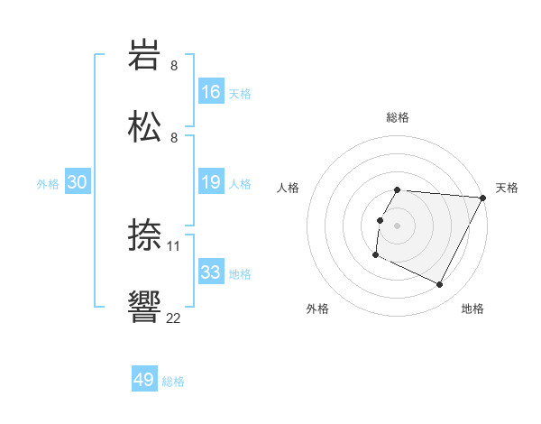岩松 捺響さんの総格は49画の2点!