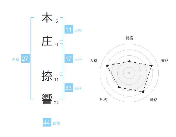本庄 捺響さんを姓名の画数から五運を鑑定