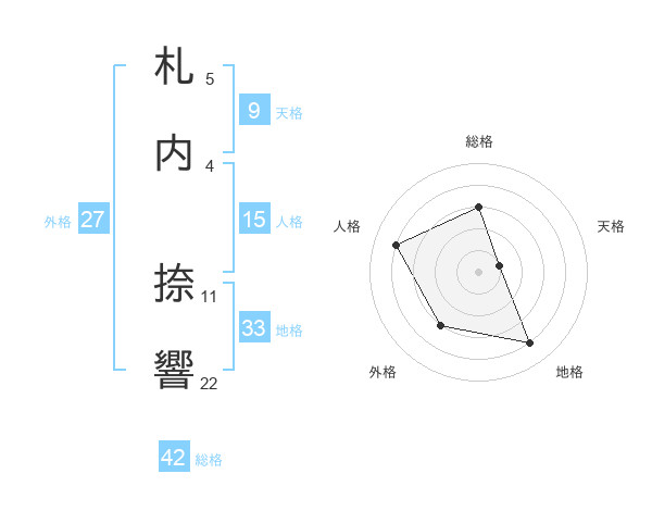 札内 捺響さんを姓名の画数から五運を鑑定