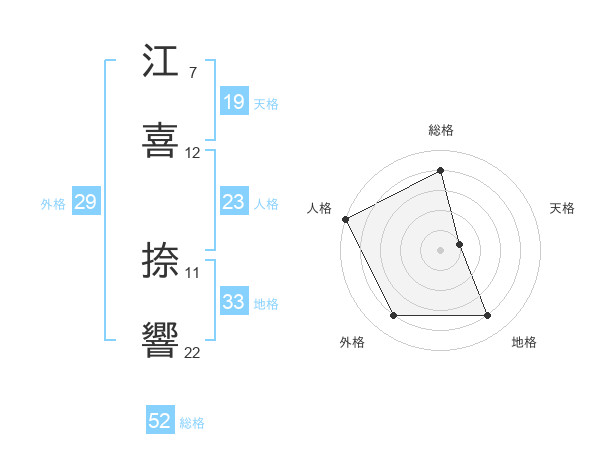 江喜 捺響さんの総格は52画の4点!