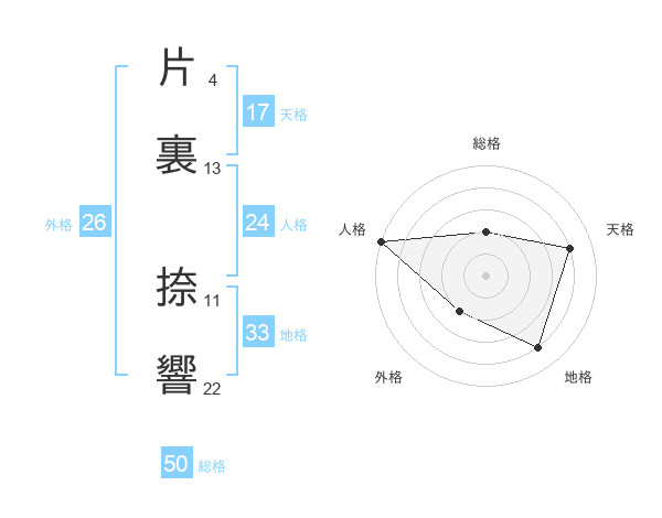 片裏 捺響さんを姓名の画数から五運を鑑定