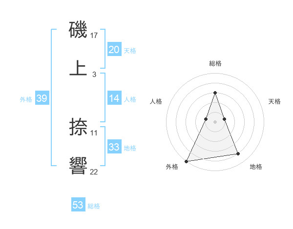 磯上 捺響さんを姓名の画数から五運を鑑定