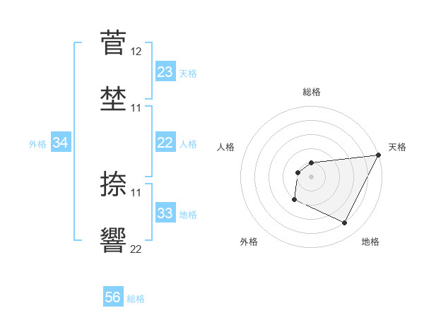 菅埜 捺響さんを姓名の画数から五運を鑑定