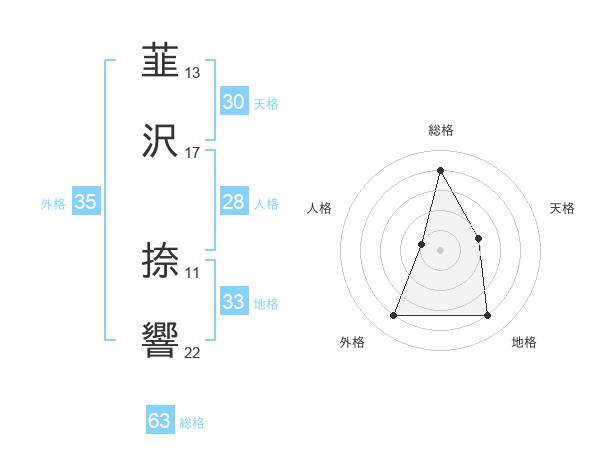 韮沢 捺響さんを姓名の画数から五運を鑑定