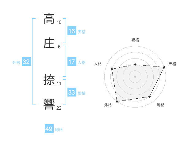 高庄 捺響さんの天格は16画の5点!