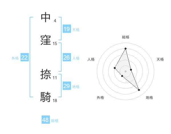 中窪 捺騎さんを姓名の画数から五運を鑑定
