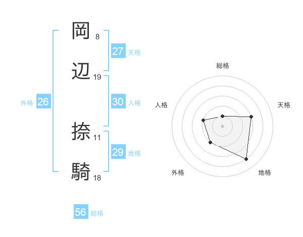 岡辺 捺騎さんの総格は56画の1点!
