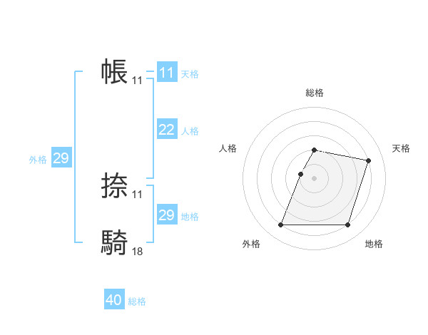 帳 捺騎さんの総格は40画の2点!