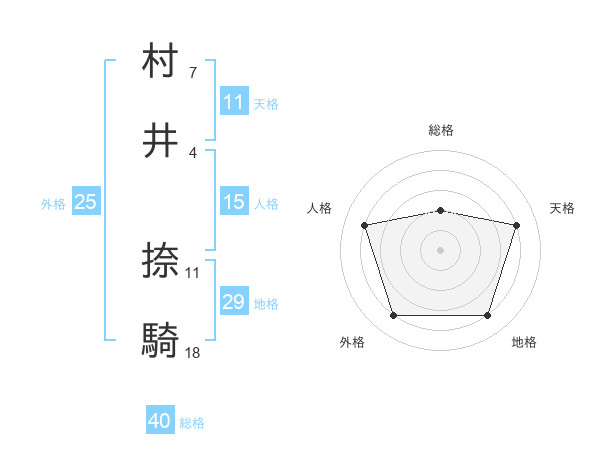 村井 捺騎さんを姓名の画数から五運を鑑定