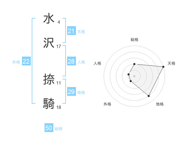 水沢 捺騎さんを姓名の画数から五運を鑑定