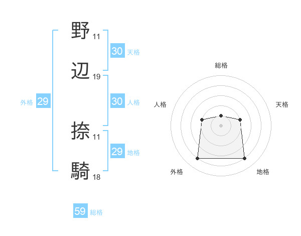 野辺 捺騎さんを姓名の画数から五運を鑑定