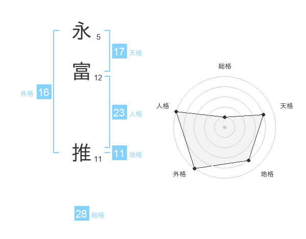 永富 推さんを姓名の画数から五運を鑑定