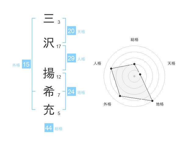 三沢 揚希充さんを姓名の画数から五運を鑑定