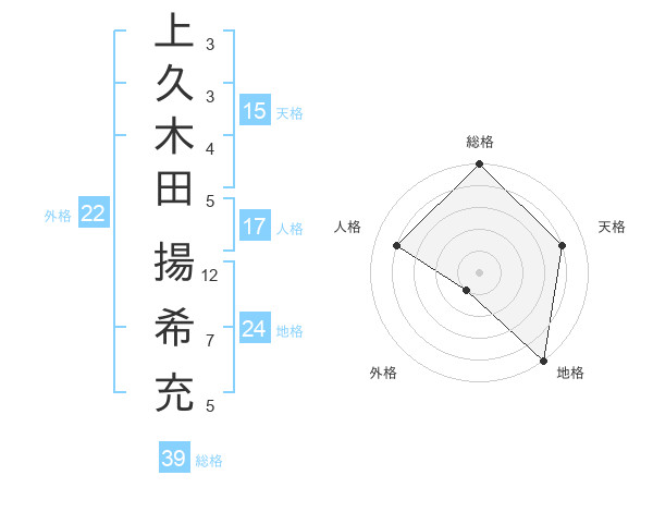 上久木田 揚希充さんの総格は39画の5点!