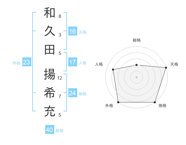 和久田 揚希充さんを姓名の画数から五運を鑑定