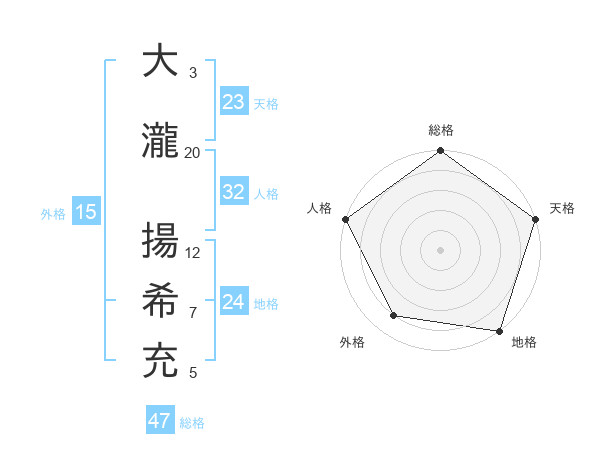 大瀧 揚希充さんを姓名の画数から五運を鑑定