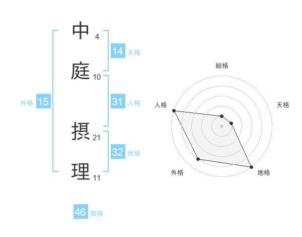 中庭 摂理さんを姓名の画数から五運を鑑定