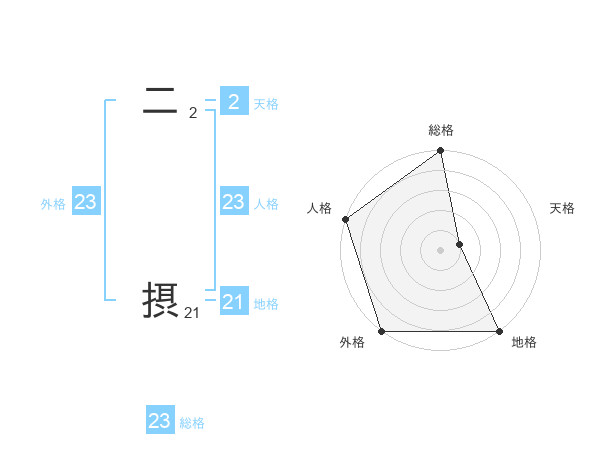二 摂さんの外格は23画の5点!