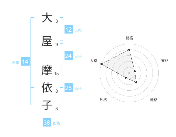 大屋 摩依子さんの天格は12画の1点!