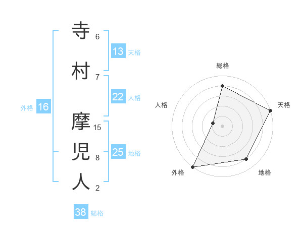 寺村 摩児人さんの天格は13画の5点!