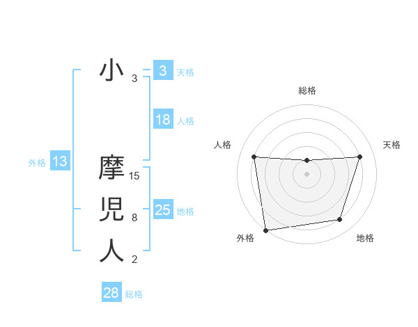 小 摩児人さんの外格は13画の5点