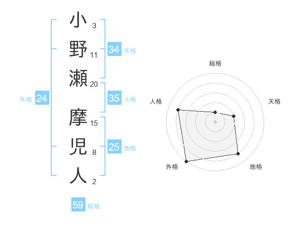 小野瀬 摩児人さんの外格は24画の5点!