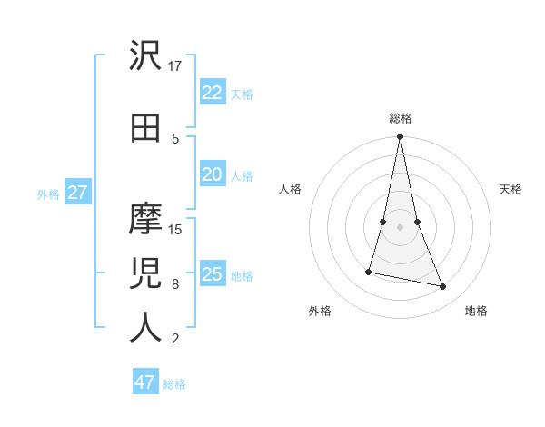 沢田 摩児人さんの総格は47画の5点!