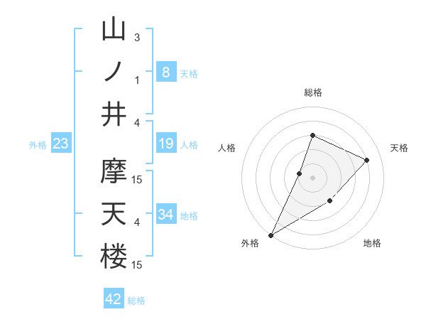 山ノ井 摩天楼さんを姓名の画数から五運を鑑定