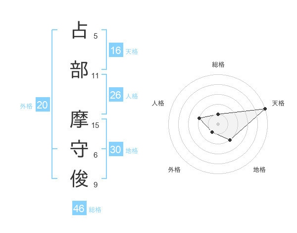 占部 摩守俊さんを姓名の画数から五運を鑑定
