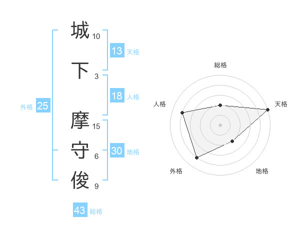 城下 摩守俊さんを姓名の画数から五運を鑑定