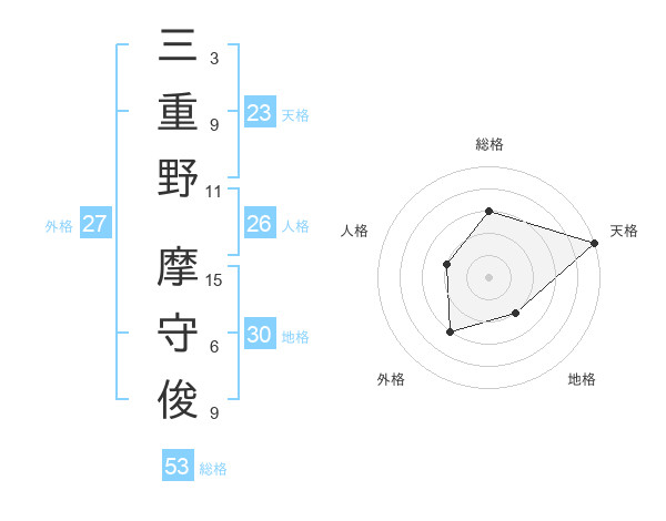 三重野 摩守俊さんの総格は53画の3点!
