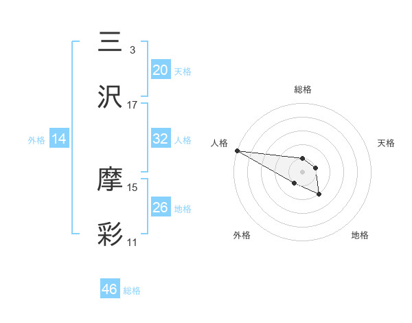 三沢 摩彩さんを姓名の画数から五運を鑑定