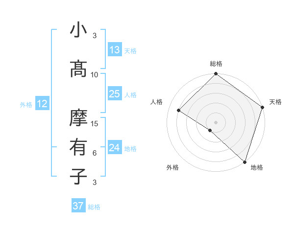 小髙 摩有子さんを姓名の画数から五運を鑑定