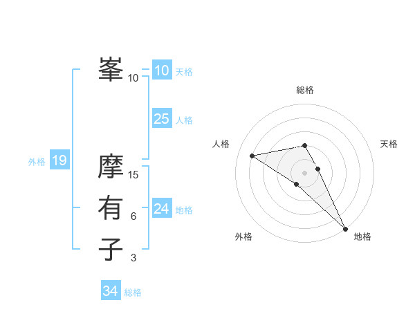 峯 摩有子さんの総格は34画の2点!