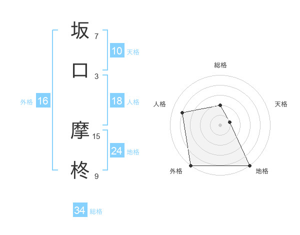 坂口 摩柊さんの総格は34画の2点!