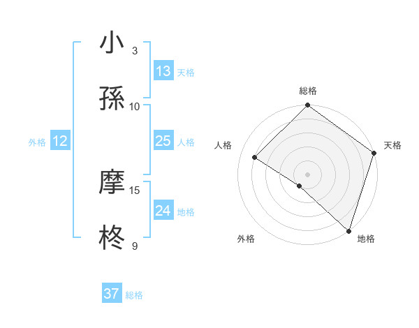 小孫 摩柊さんを姓名の画数から五運を鑑定