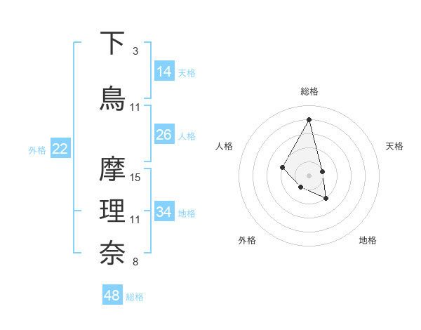 下鳥 摩理奈さんを姓名の画数から五運を鑑定
