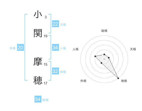 小関 摩穂さんを姓名の画数から五運を鑑定