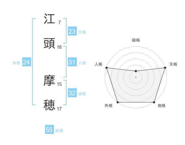 江頭 摩穂さんの総格は55画の1点!