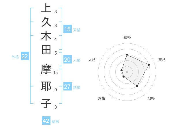 上久木田 摩耶子さんを姓名の画数から五運を鑑定