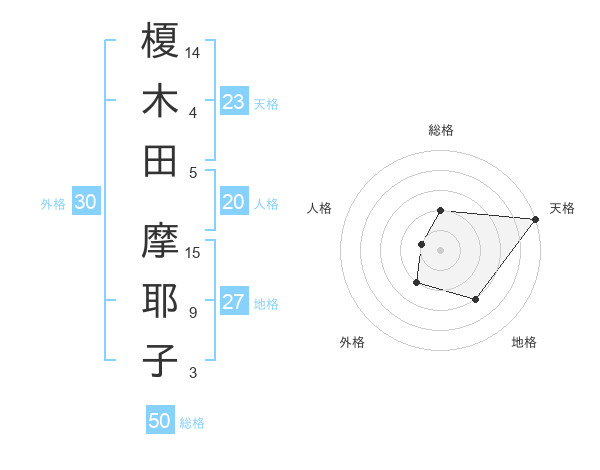 榎木田 摩耶子さんを姓名の画数から五運を鑑定