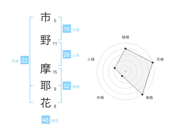 市野 摩耶花さんを姓名の画数から五運を鑑定