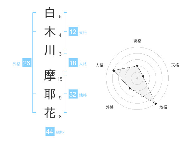 白木川 摩耶花さんを姓名の画数から五運を鑑定