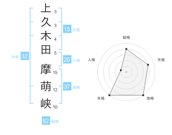 上久木田 摩萌峡さんの総格は52画の4点!
